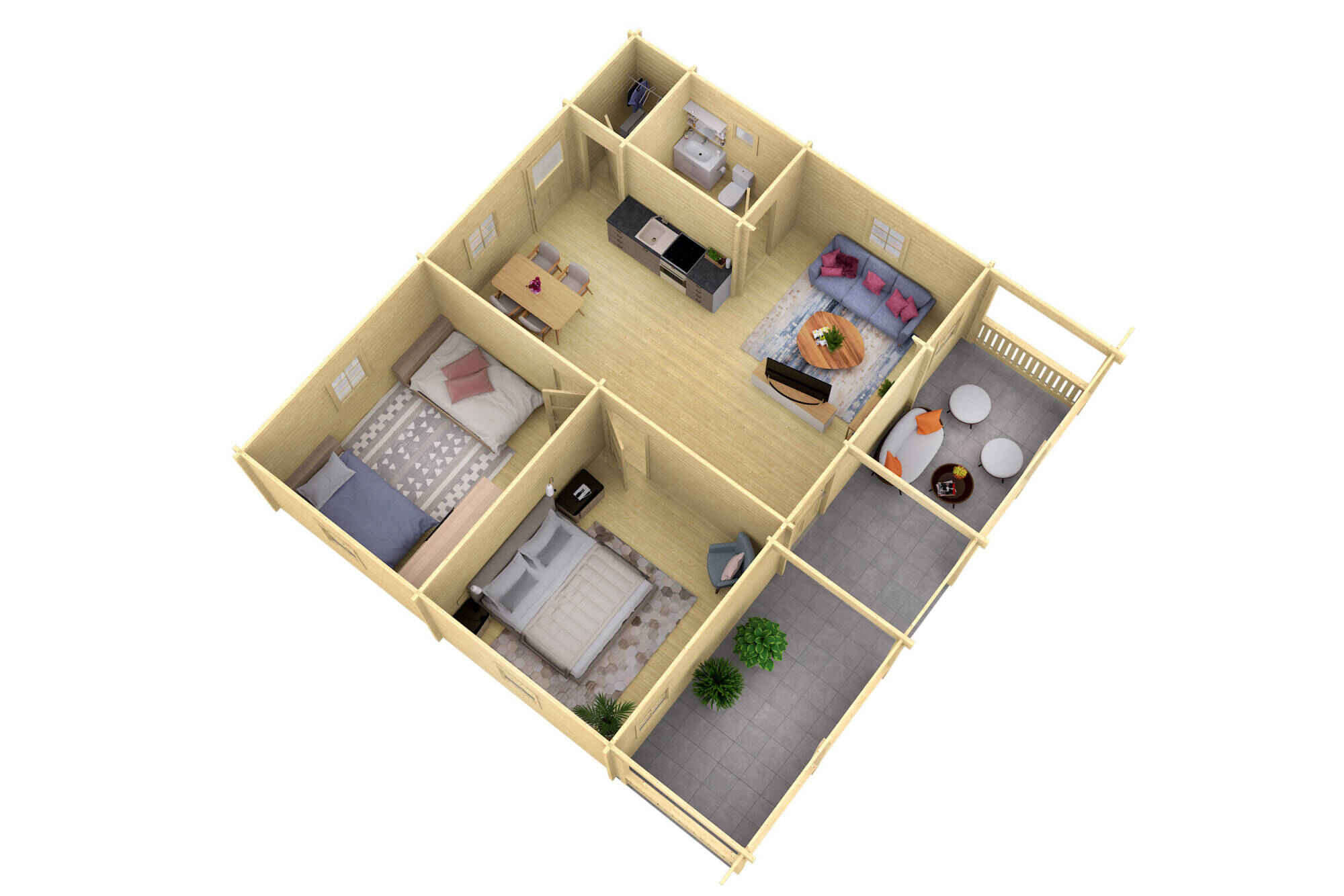 - 2 spare wall logs/spare roof boards